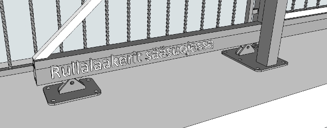 Liukulaakerit palkin sisällä säältä suojattu. Takaa portille varma toimivuuden.